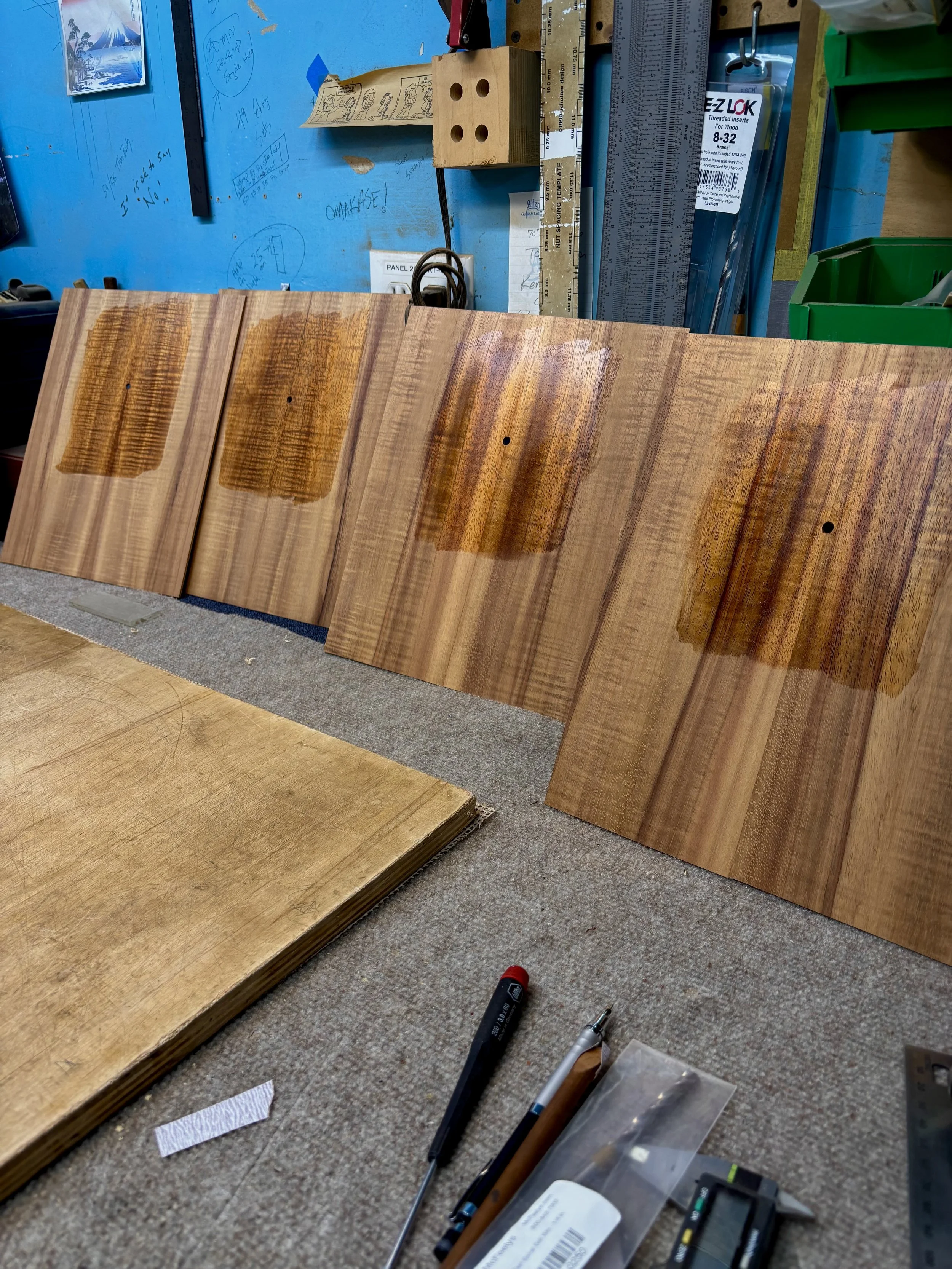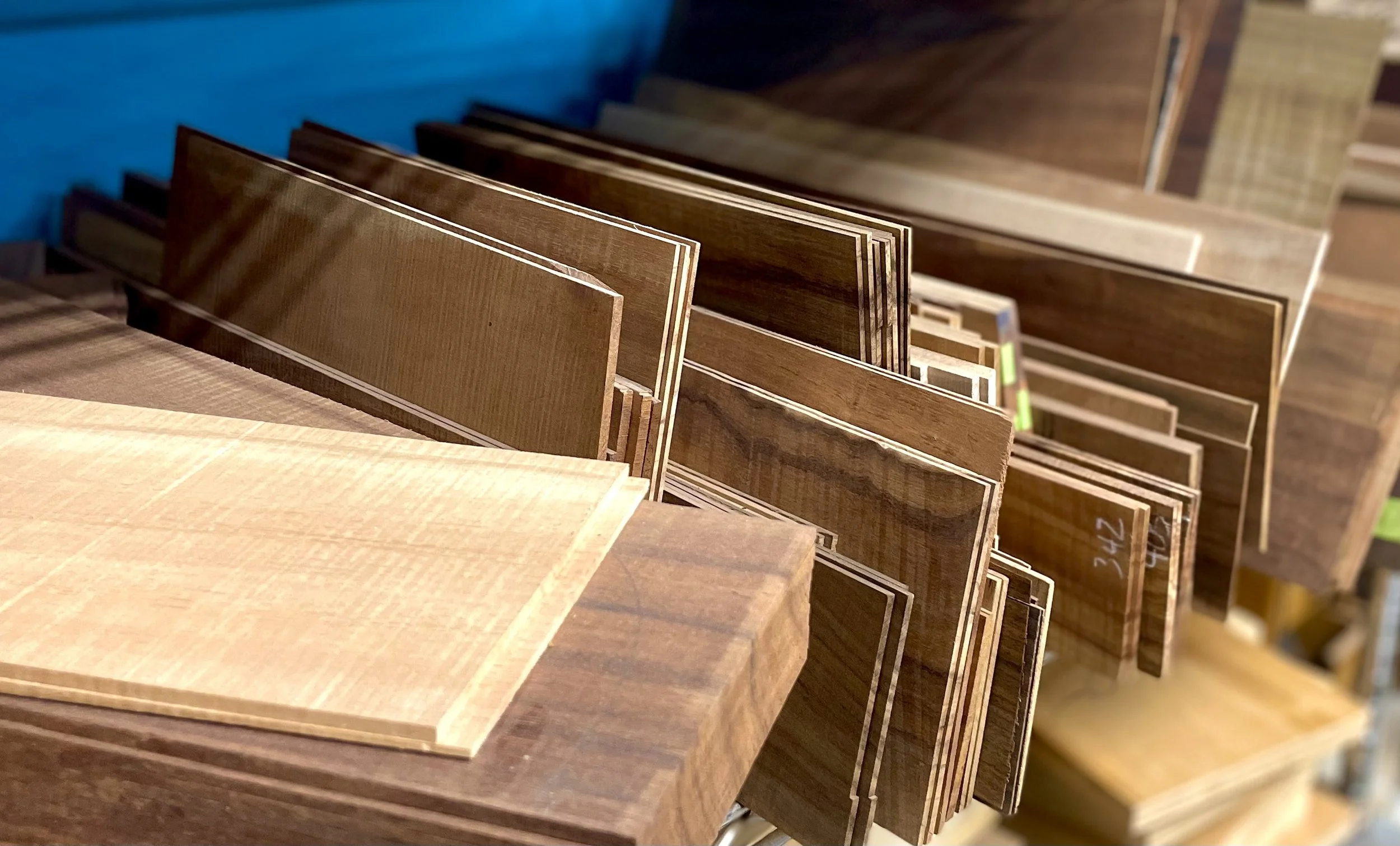 We also help to choose your wood sets and go through adornments like binding wood choice, purfling colors and shell types as well as any custom inlays.